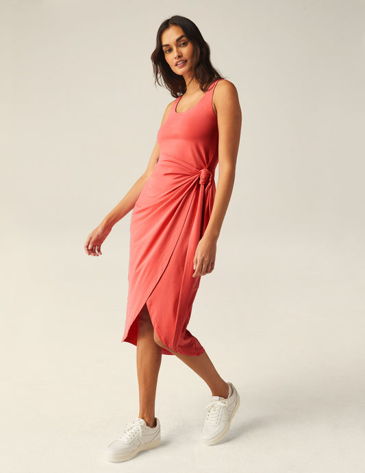 Candy Apple Red Side Twist Midi Dress - Lightweight Aerial Jersey Packable Style