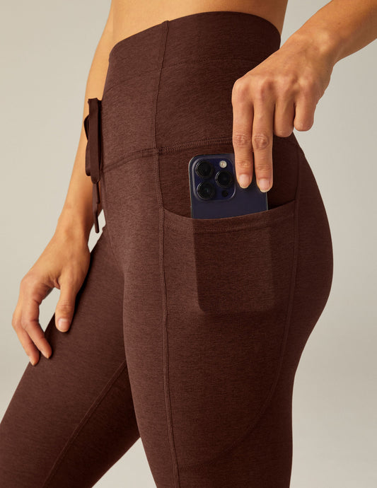 Chocolate Heather Spacedye Midi Leggings: High-Waist, Drawstring, Side Pockets