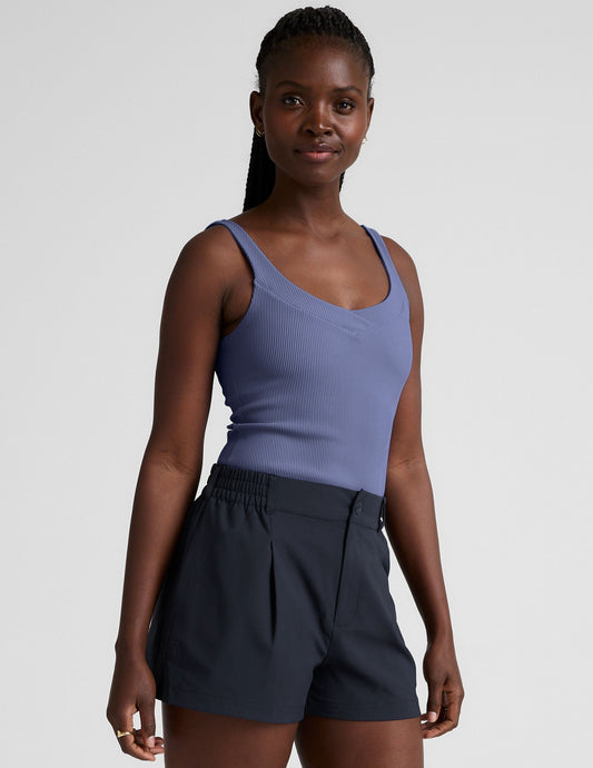 Comfortable Ribbed V-Neck Tank Top with Built-In Bra & Compression