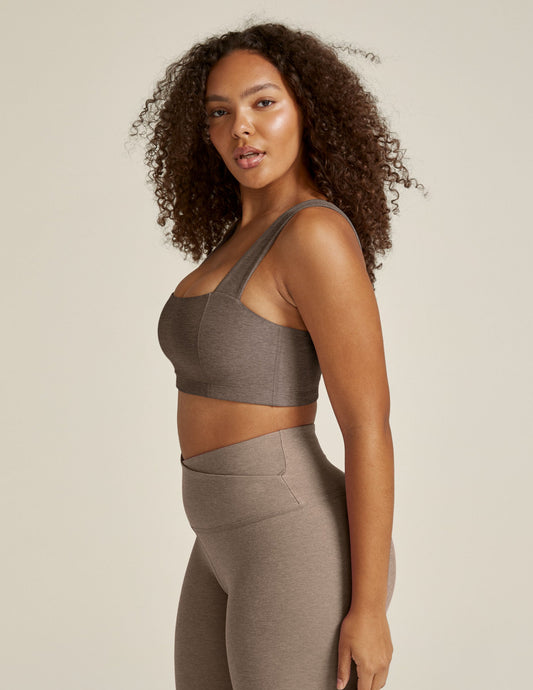 Spacedye Squared Bra: Soft Umber Heather Medium Support Activewear Top for Yoga