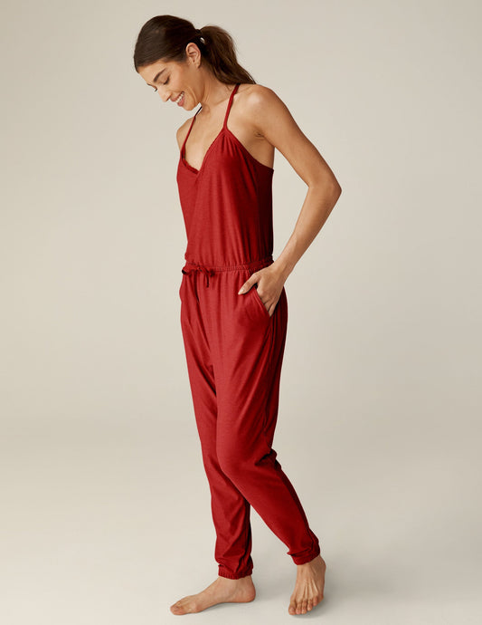 Luxurious Featherweight Lace Racerback Jumpsuit Ruby Red Heather Comfort Loungewear