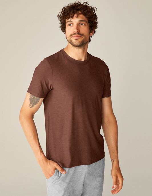 Beyond Yoga Men's Featherweight Crew Neck Tee: Ultimate Comfort, Ribbed Style
