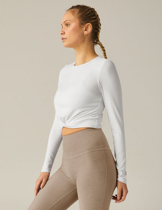 Ultra-Soft Featherweight Cropped Long Sleeve Pullover with Crossover Detail