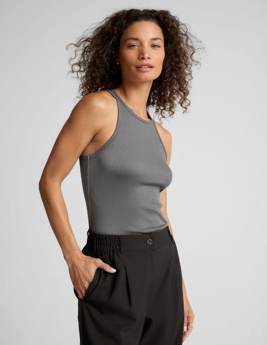 Women's Ribbed Formation Tank Top: Slim Fit, Crew Neck, Stone Gray