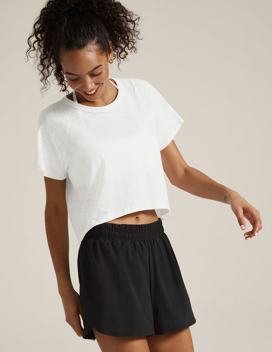 Signature High-Low Cropped Tee: Relaxed Fit, Scoop Neck, Short Sleeve Top