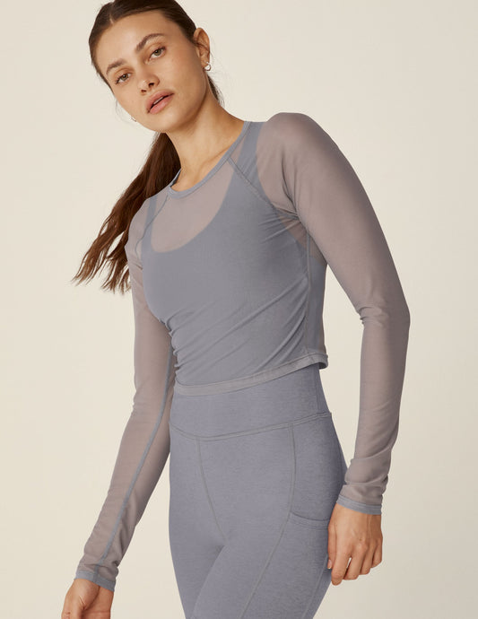 Sheer Mesh Long Sleeve Cropped Top for Activewear & Casual Layering